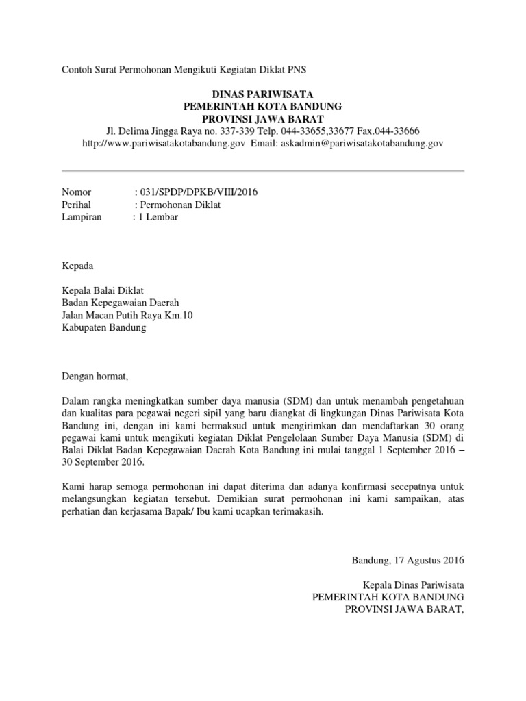 Contoh Surat Permohonan Mengikuti Diklat Contoh Surat